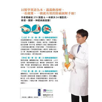 李炎諭醫師著作本書是一本實用且易懂的醫療保健書籍。圖解內容由淺至深讓讀者一目了然各種肌肉骨骼問題,也快速告訴讀者如何緩解常見的不適,是家庭與職場必備良書,值得細細閱讀與收藏!