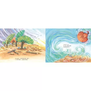 海上有座美麗的島,但是島上的居民把樹林砍伐來建造各種東西,導致林木都消失了。而島的北方有隻大鱟(ㄏㄡˋ),每當大鱟吐出氣息時,島上就會飛沙走石,變成一座風沙島……