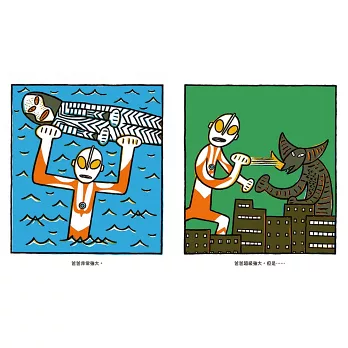 從父母小時候電視經常播放的「鹹蛋超人」,到近年仍受孩子們歡迎的「超人力霸王」,親子間對於超級英雄保護城鎮不受外星人攻擊的回憶,藉由閱讀宮西達也創作的「超人力霸王」系列繪本產生共鳴,增加親子互動性、創造更多共同話題。