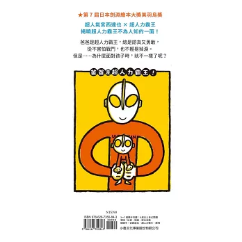 宮西達也將孩子心目中最偉大的超人力霸王爸爸詮釋的幽默逗趣又溫暖動人!出外努力打拚的爸爸偉大帥氣到所向無敵,但面對自己的孩子時,總能轉換心情和態度,表現出最深情的父愛和關懷,雖然有時傻氣的可愛!全書明亮的色彩和粗黑輪廓線勾勒的卡通造型,也將故事的氛圍營造的極為活潑歡樂,實在是增進親子關係的優良繪本。