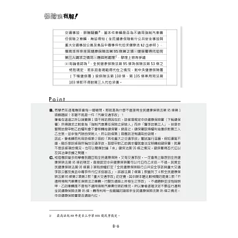 再者,本書也會針對「每一個爭點」提供答題模板,讓同學們看到題目的時候就能反射性地安排出邏輯嚴謹的寫作架構,即使不是商法組的同學,也一定能迅速下筆,相信經過本書的「洗禮」保險法不再是拖累任何考生的科目。針對答題用字的精確性,筆者在寫作過程中會一併參考學者、實務見解的用字遣詞,經過濃縮、精煉之後加以呈現,讓讀者在閱讀的過程中就能習慣出題老師們的慣用語。