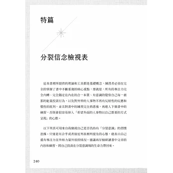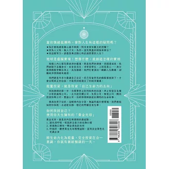 這套書所希望呈現的是一個較為全面性的思想系統,書中分享的許多概念可能會與大家所熟悉的道理和認知大相逕庭,因此,也請讀者朋友在閱讀時,給書中的訊息一個機會,因為,這些訊息所𢹂帶的頻率,或許會為閱讀者打開一條更寬廣的路,讓大家可以因了解這套書所呈現的生命知識,活得更自在、更豐盛。 此外,這套書的內容並非針對某些特定族群的讀者而寫,而是為每一個地球人所寫。因為地球的整體頻率正在揚升拓展,人類的集體意識也正在邁入下一個階段的意識層次,因此,雖然每個人遲早都會憶起自己是誰,都會走上合一的道路,但對於在現下生命中感到被壓抑、限制以及想進一步了解生命本質的人,書中所分享的觀點和轉化方法,或許會特別有幫助。書中的內容也許並非終極真理,但會是一個回歸真我的起點。任何人只要願意重新認識並連結自己內在的合一本質,都會在自己所有的層面上造成影響,也不會永無止盡的迷失在厚重的戲服堆裡,而是可以像一粒明亮的珍珠,無論外境是什麼現象,永遠靜靜的閃耀自身的光華。外境可以變化無窮,但內在那幻化出萬象的合一脈動卻永遠不變。
