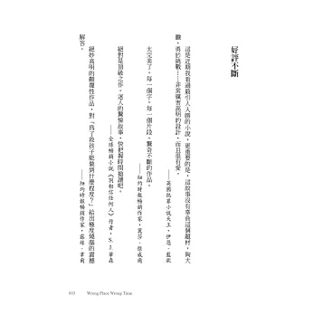 ◎ 大膽創新、曲折離奇,高超的說故事技藝,讀者盡管放心讀,翻開此書您就進入對的時間、對的地點。──《紐約時報》暢銷作家,A. J. 芬恩