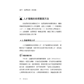 「經歷過三十多年的高階主管評估,我明白有些人取得的成就遠超過其他人,但原因卻不總是那麼明確。懷斯曼提出了新穎且引人注目的分析,闡述了乘數者如何創造價值,而其他人則是如何破壞價值。」──湯姆.佛瑞爾(Tom Friel),海德思哲國際諮詢公司(Heidrick & Struggles)前執行長暨董事會主席