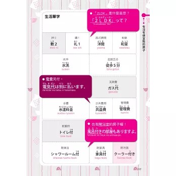 如何租到心儀的窩?如何花錢更經濟?搭車有什麼小技巧?哪裡的購物比較划算?成為日本的生活達人,隨時獲取新知,避免落入尷尬局面,所有的好康都不會錯過!學習方式既輕鬆又易懂,讓你不自覺地就學上癮了。