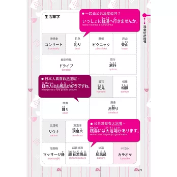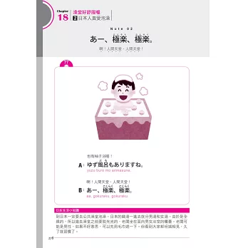 本書用生動有趣的排版,加上滿滿的萌萌插畫,翻開的瞬間就「超吸睛」,讓你告別那些讓人頭暈目眩的文字堆砌。當學習變得有些單調,書裡及時穿插了關於日本文化、實用生活知識的小貼士。