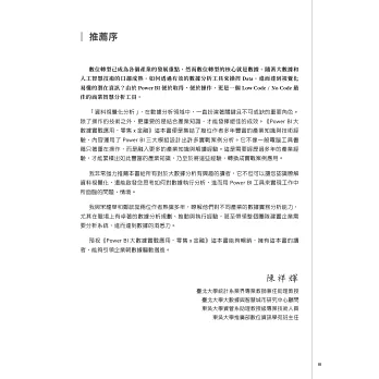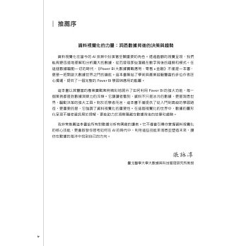 在當今快速變動且複雜的商業環境中,運用數據提升決策效率至關重要,本書不僅提供了從基礎到進階的Power BI知識,更結合零售/金融產業實戰應用,透過豐富的跨領域實例,讓讀者能夠真正運用數據結合實務情境,達到做中學及接地氣的加成綜效。