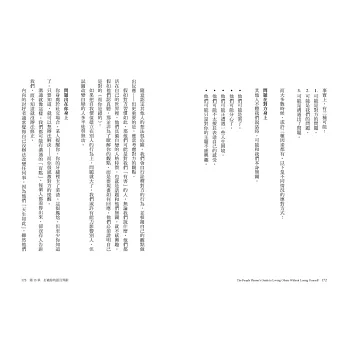 只要旁人的想法跟自己不符,我習慣妥協或附和,便不必面臨否定或衝突。──這樣的人通常缺少靠一己之力解決對立的經驗。(第5章)