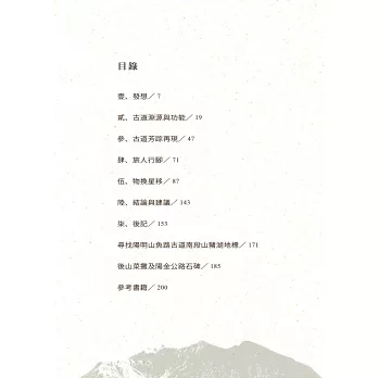 它可能是先民狩獵或採集民生用品的路徑,它也曾是人群聚落間往來交通路徑,它也可能曾經黃金買賣運送交通要道,它也曾擔負運送硫磺礦產的路徑,它也曾是運送茶葉的路徑,它也曾是據山立寨土匪出沒的路徑,它也曾是伺機抗日的游擊殺敵的路徑,它也曾是運送軍事砲管的路徑,它也曾提供兩地締結姻緣的路徑,它也曾是媽祖神明繞繞的路徑,它也曾提供牛隻寄牧或販售的運送路徑,它也曾是淘金客尋寶的路徑,還有它也曾是鴉片運送的路徑,依循歷史社會的變遷,而賦予種種各式各樣的功能,它也曾吸引人群在其區域從事稼穡或擔任守磺任務進而結廬定居,甚至形成聚落。