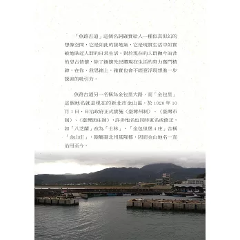 「路是人走出來的」這個觀點,以它來印證陽明山國家公園第一條歷史步道—魚路古道(也稱金包里大路)的發展歷程,可謂最恰當不過。因為魚路古道是臺灣先民謀生交通路線之一,當然這條路線隨著社會變遷也賦予它多樣性的運輸功能,在現有一般普遍可查詢或追尋的文獻史料中,這條路線從古至今概都以噍類雙腳為主軸,歷經不同的年代,儘管擔運主要貨物時有改變,但唯一不變就是腳力。