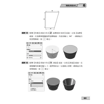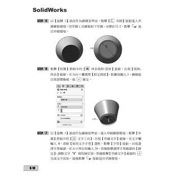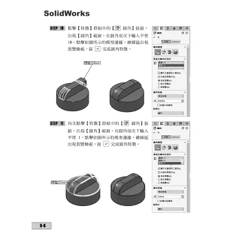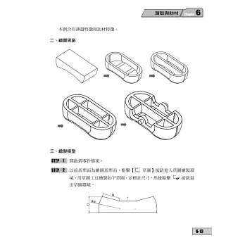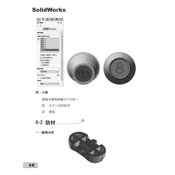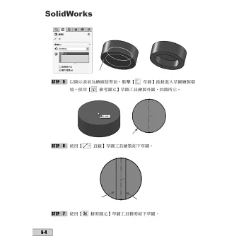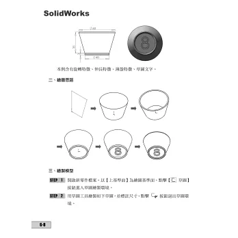 本書精選SolidWorks重要基礎操作指令,透過實例引導分別講述SolidWorks的基礎應用、伸長與除料、旋轉、複製、參考平面、薄殼與肋材、掃出、疊層拉伸、工程圖、組合件、鈑金與塑模、零件庫等功能。將重要的應用技巧結合到實際教學中,使讀者可以循序漸進、隨學隨用、邊看邊做,便於鞏固所學的知識,在工作與學習中能快速得到實踐。