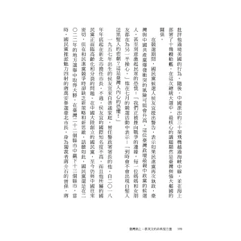 從戒嚴時期到第一次總統直選、政黨輪替至今,戰爭的可能性和北京的威脅持續威脅著2300萬人民的生命。在瞬息萬變的世界局勢中,臺灣的未來將會如何?透過本書,我們更能夠理解臺灣在全球政治舞臺上所處的脈絡。
