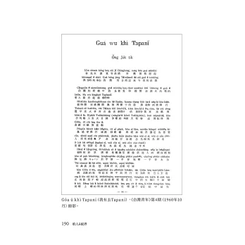 Chia--ê是一寡過去ê經驗,聽--來ê故事,實用ê觀察,哲學ê思考……té-té ê 話仙,小小ê故事,簡單ê報告……想tio̍h啥寫啥,有話bóng講,鬥做一張花花ê圖。Hn̄g看近看,主要是用台灣人ê眼光四界看。