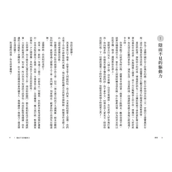 本書提供價值清單,讓你覺察既有潛質,並運用強化潛質5步驟,引導你充分發揮並適當強化,甚至挖掘出你從不知道自己有的沉睡能力。在這個不斷調整與校正的過程中,無論我們未來陷入何種境地,都能依靠潛質相信自己,突破困境。