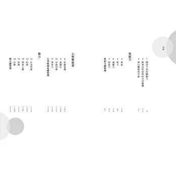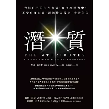 每個人都有屬於自己的潛質分布,我們不需要將所有潛質強化,重點是知道自己哪些潛質強、哪些潛質弱。壓力愈大,浮現的潛質就會愈加清楚可辨,本書作者將潛質分為5大類:恆毅力、心智敏銳度、動力、領導力、團隊力,共計25個核心潛質。根據這25種潛質,引導你如何自我觀察自身潛質曲線,並懂得適應情境調節。