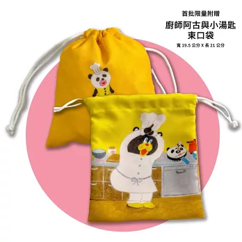 一個因為沒客人上門而唉聲嘆氣的廚師,遇上一個有點古怪神祕的貓熊老闆,老闆彷彿知道他的困境,送他一個貓熊平底鍋。沒想到這個平底鍋裡面裝著一隻小小的貓熊。讓人迫不及待的想要翻開書頁,進入這個魔法和美食的奇幻故事。這隻小小的貓熊叫做「小湯匙」,扮演著啟發和鼓勵阿古的重要角色。透過他的引導,阿古學會了如何做出美味的料理,並且在過程中找到了快樂和滿足感。