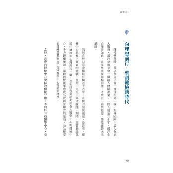 本書完整集結了聯安預防醫學機構三十年來,如何從一家小診所,歷經水火挑戰、經濟風暴、病毒侵襲等艱鉅困境,並獲得醫界肯定。又是如何涵養出共好的企業文化,打造出連CEO們都信賴的人性服務,讓聯安成為國內高階健檢龍頭,並持續壯大預防醫學事業版圖。