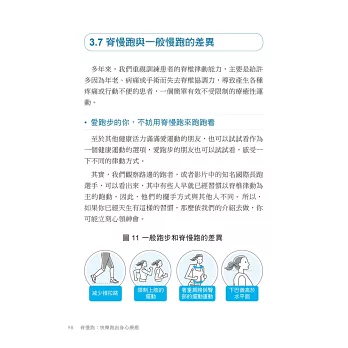 如果患者原先就有跑步的能力,那麼只要開始跑一跑,通常就會有很大的改善效果;如果他們不能跑,甚至不能走,我們就要一邊去指導,一邊去處理限制他們走動或跑動的因素(譬如坐骨神經痛、膝痛或腳痛)。