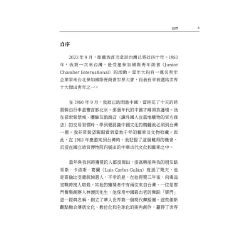 他也藉此機會,將他過去四十年來與台灣結緣的點點滴滴寫成書,我也很佩服他的活動力,他也是許多年輕朋友學習的典範,在此將本書推薦給大家。