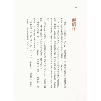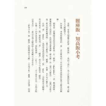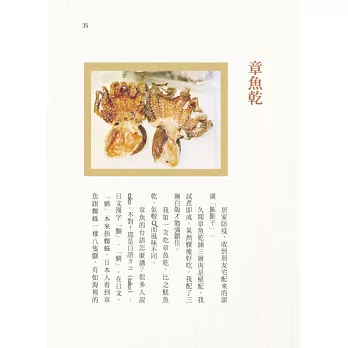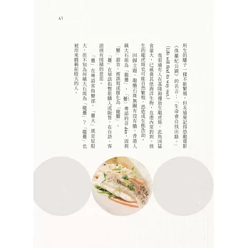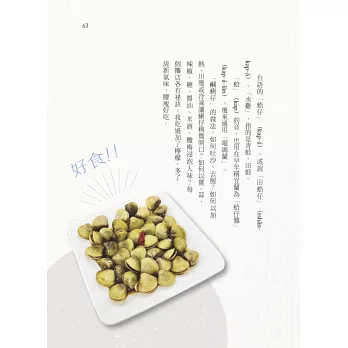 本書的內容輕鬆有趣,而且有各種考證資料。我最喜歡的則是作者從台語、日語去追本溯源,找出食材名字的關聯演化,讀起來有趣且很有收穫。