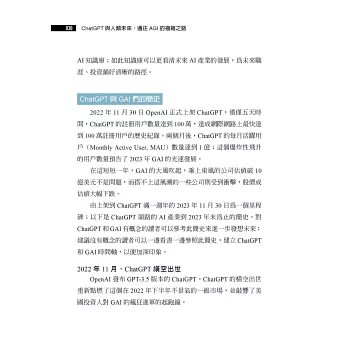 2024年3月中,OpenAI的ChatGPT如我們預料一般仍是生成式AI(GAI)市場最強的產品之外,算力需求暴增和AI立國論風潮的興起也是我們在決定寫書那一刻時所建的假設和架構,我們提早看到了AI新世界的信號。唯二出人意料外的算是OpenAI的叛變事件和AGI降臨的時點已經超過我們當初的想像。