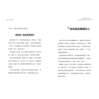 朋友不在多,就怕遇事縮,與人交往應保持真誠和善良,但永遠別高估和任何人的關係。本章分享「如何捨棄無用的關心和人情」、「人脈是人脈,人情是人情」、「拋棄變質的關係」,以及如何遠離毒舌的人、聰明地疏遠、利用社交潛台詞,你會發現很多時候,為難你的不是別人,其實是自己。
