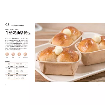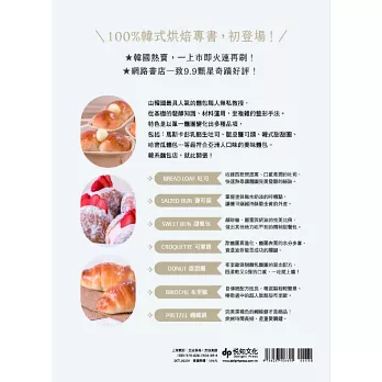 書中涵蓋多樣風格的麵包食譜,包括可當作主食的美味料理麵包、填滿各種鮮奶油的布里歐甜甜圈、在家就能輕鬆製作的蝴蝶餅麵包、兩種不同口感的鹽可頌及經改良的創意版本,還有填入各種餡料油炸而成的可樂餅等。書中不僅收錄了目前麵包市場上最受歡迎的品項,還有符合韓國口味且具備韓式風格的多款麵包。考量烘焙時的生產力和效率,書中選擇了「以單一麵團製作多款菜單」的方法,並運用鮮奶油或內餡變化來呈現各種獨特的菜單。