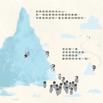 企鵝們都想到冰山上去探個究竟,但多年以來只有一隻企鵝成功上去過。