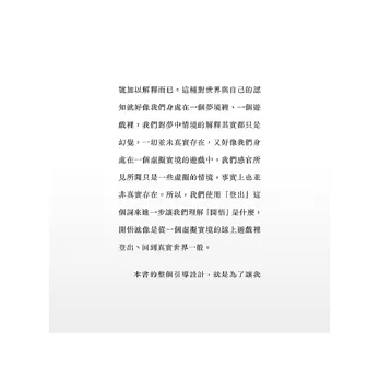 本書的整個引導設計,就是為了讓我們能登出開悟、回到真實的實相。至於真實到底是什麼,我們並不需要用文字去詮釋,而是希望大家能親自去體悟。