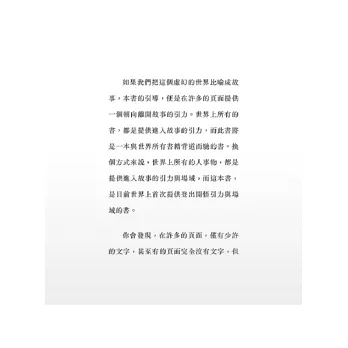 如果我們把這個虛幻的世界比喻成故事,本書的引導,便是在許多的頁面提供一個朝向離開故事的引力。世界上所有的書,都是提供進入故事的引力,而此書將是一本與世界所有書籍背道而馳的書。換個方式來說,世界上所有的人事物,都是提供進入故事的引力與場域,而這本書,是目前世界上首次提供登出開悟引力與場域的書。