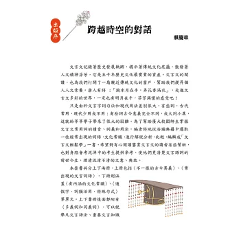 本書特別根據文言文字詞、句法特點,介紹學習文言文必須掌握的基本知識及能力,期待莘莘學子能因此跨越文言文難讀、難懂的障礙,讀通經典詩文,成為通曉文言文的小達人。