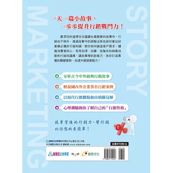 最有成效的道理往往藏在聽來最簡單的故事裡,在那些成功的故事與實際案例當中,往往蘊涵著能讓讀過的人一點就通的行銷法則,它或許不是那麼地博大精深,但卻是能讓產品及企業行銷成功的原因!!最棒的是,在你讀那些故事時,它所述說的行銷法則你都看得懂!!