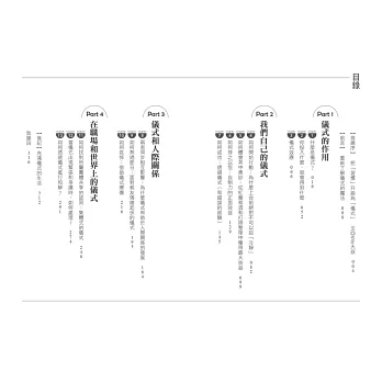 儀式通常是在我們的感知雷達下默默運作,讓我們得以品味日常生活的所有經驗。透過本書,我們將知道儀式如何幫助我們好好的開始、平和結束一天﹔如何強化生活與工作上與他人的關係;在戰爭與和平時如何操作﹔以及如何讓我們從自動化的生活轉型至更活潑、變動的人生。