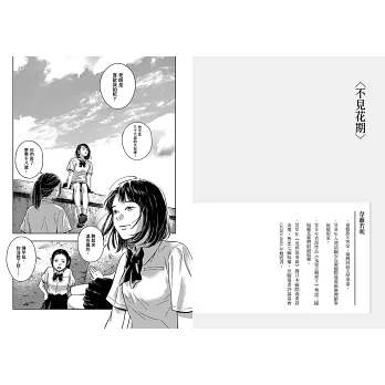 〈不見花期〉講述一段相差18歲的禁忌之戀,讓我憶起學生時期也傾慕過的學校男教師,看著主角在18年後帶著我們回顧那段無疾而終的暗戀,過去說不出口的遺憾彷彿也得以釋然。韋蘺若明老師筆下的人物美型,細膩柔美的光影猶如一幀幀電影畫面,讓那段封塵已久的記憶重新鮮明起來。