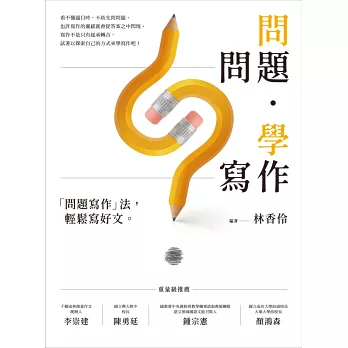 林香伶教授所編撰的這本書,以煥發出寫作者的自我為前提,提出了一種有效引導的方式。「問問題」看似嚴肅,實際上是鼓勵「活出自己」的寫作教學。試想:生活沒有觀察、體驗,遇事沒有認知、解釋,人生沒有目標、意義,怎麼能寫出自己呢?通過提出具有層次的問題,類似綱要性的簡答,來協助寫作者進行反省、體會或挑戰,在主題的範疇中,慢慢由句、段而成篇。更重要的是,這本書取材的設定相當生活化,適用於各行各業,包括未來不同發展方向的學子們從事學習。這是在傳統教學基礎和寫作學理運用後的教學突破――學習成效可期的一種突破。