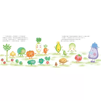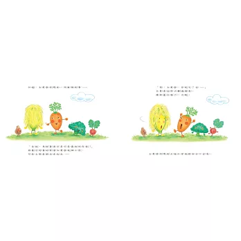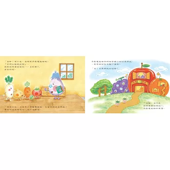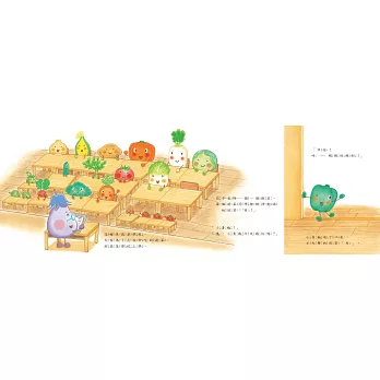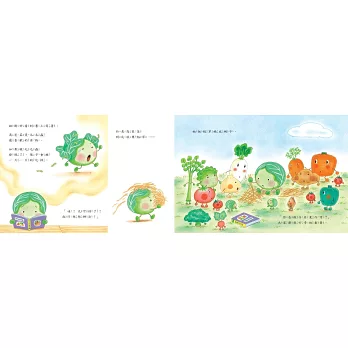 故事裡的蔬菜對話和互動直率可愛。讓孩子看了感覺親切,大人也覺得有趣,我認為是這套書吸引人的地方。