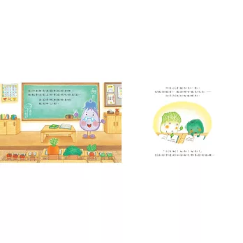 每一種蔬菜都有不同變好吃的祕密,例如高麗菜為了變好吃,拚命的讀書讓腦袋變重。