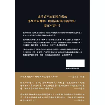 自《成功9步驟》在日本發行至今已經二十年,經典不敗,歷久不衰。我直接教授五十萬人,間接大幅提升了千百萬人的生命品質。這本書,一直為各行各業的人帶來無數顯著的轉化。激勵大家放手一搏,克服情感和信念上的障礙,創新突破,誘發財富及人際潛能,並實踐身心靈全方位的健康及豐盛。最重要的是,在生命中找到深刻的意義及使命。