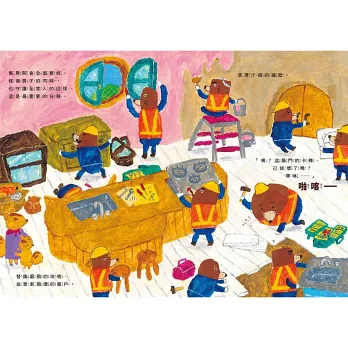 印象中,應該是第一次看到這麼鉅細靡遺呈現建築施工過程的繪本,不只以有趣的方式介紹如何修繕、確認問題、進行強化,還包含過程中登場的各項大型機具和它們各自的功能,特別迫不及待想跟從事建築業的家人分享,他們一定會非常開心!也很好奇下一次鼴鼠建設又會接到什麼樣的工作呢?就讓我們拭目以待吧!