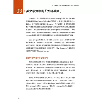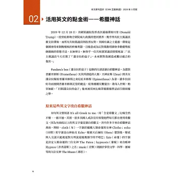 說明英美報刊和美劇詞句的文法重點或中文翻譯問題,並解說時間詞和否定詞的用法,引導讀者釐清文法要點,奠定英文基礎。