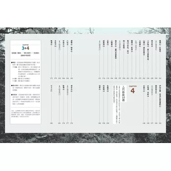 這本書是崔祖錫多年穿行山林的紀錄與研究,長達30年的踏查,讓他累積了數量龐大的照片與資料,他將台灣中級山分成12個山區,從山系、水文以及歷史切入,並親自繪製12張山區地圖,為讀者建構出得以橫向、縱向觀覽台灣山林系譜與歷史的地圖。
