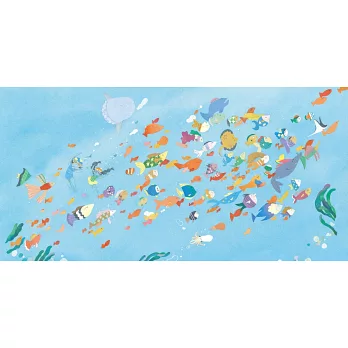 這是一本觀看畫面就能聽見輕快樂音、感受清涼的繪本。好適合在炎炎的夏日,和孩子跳進想像的大海,跟著魚群一起放鬆嬉遊、一起享受自由自在的快樂時光。——嚴淑女(童書作家與插畫家協會臺灣分會會長)