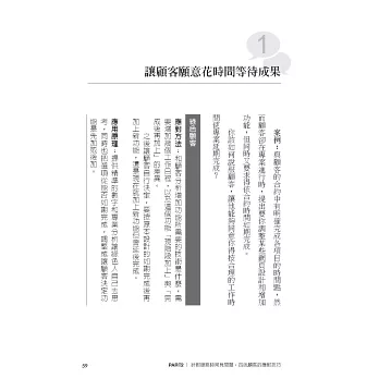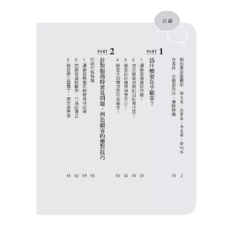 這本書整理了多種服務人員會遇到的溝通場景,不管是客戶抱怨要求賠償,或是邀約客戶參加公司宣傳活動,你可以將本書當作一本工具書來使用。——鄭均祥