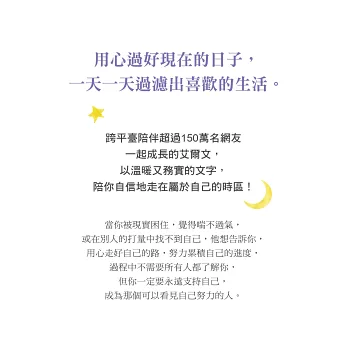 因此,艾爾文想寫一本關於「人生只跟自己有關」的書,經由他的故事來訴說他走過的路、體會過的煩憂;寫出他尋覓自己的過程,讓你也能在茫然時找回自己。