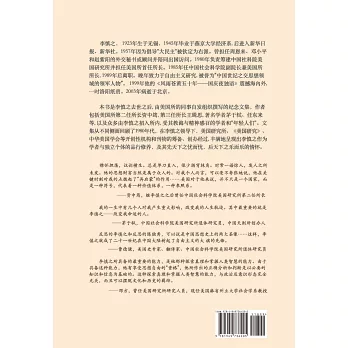 本書是李慎之去世之後,由美國所的同事自發組織撰寫的紀念文集,作者包括美國所第二任所長資中筠、第三任所長王緝思、著名學者茅于軾、任東來等,以及眾多由李慎之招入所內,受其教誨與精神感召的學者和「年輕人們」。文集從不同側面回顧了1980年代,在李慎之領導下,美國研究所、《美國研究》、中華美國學會等開創性機構和刊物的籌備、創辦經過,豐滿地呈現出李慎之作為學者與獨立個體的品行修養,以及其先天下之憂而憂,後天下之樂而樂的情懷。