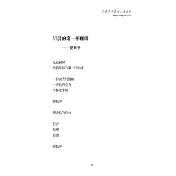 承蒙秀威資訊科技公司一本支援詩集出版初衷,慨然接受【台灣詩叢】列入編輯計畫,對台灣詩的國際交流,提供推進力量,希望能有更多各種不同外語的雙語詩集出版,形成進軍國際的集結基地。