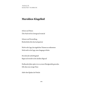 萍芬的德國丈夫,中文名叫「孔茂」,是個小說家。這也是我以前沒想到的——以前我只知道孔茂是一個高明的醫生,對病人和朋友都極有耐心。直到有一天,他拿出一疊翻成中文的小說稿,就像這次,萍芬寄來一本詩集,冷不防嚇人一跳。並且,孔茂的小說是寫他在上海行醫之際,如何千難萬險上湖北武當山,尋找道家的修煉方式,以求得心靈的解脫或開悟——讀完萍芬的詩集,我的眼前不再是臺灣策展人和德國醫生的組合,而是詩人和小說家的神交。萍芬的日記式詩歌,恰恰是孔茂當年追尋的答案。比如在自序中,萍芬提到弘一法師臨終那世人皆知的「悲欣交集」,我的理解是,對於活著的人們未知的死亡,或未知的疆域,即將跨入死亡的弘一法師,不知道是「悲」還是「欣」,所以,萬般「交集」——孔茂也一定讀懂了以下詩句: