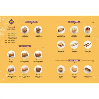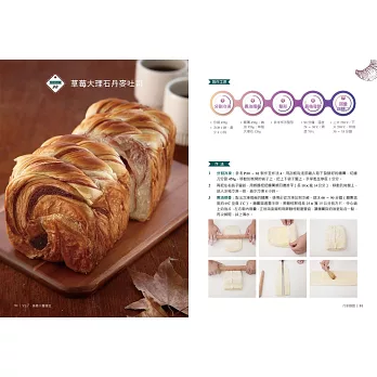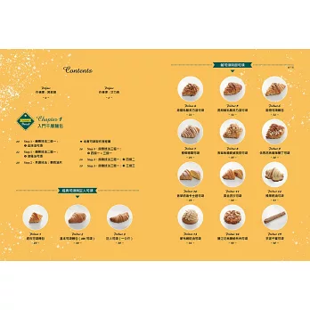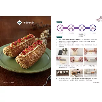 進入更高層次的烘焙藝術,探索「日式菓子麵團」、「丹麥麵團」、「國王麵團」三種麵團的魅力,每一種麵團都擁有獨特口感和造型變化,將千層麵包昇華至專業水準。