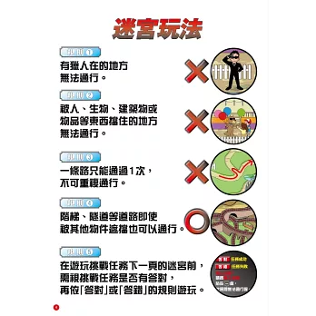 本書不僅僅是一本圖案迷宮書,它融合了日本超人氣綜藝節目「全員逃走中」的刺激元素,讓讀者在避開獵人的同時,完成各種特別任務,進一步挑戰自己的智慧與勇氣。書中設計了初級、中級和上級三個階段,每個階段都帶來不同的挑戰與驚喜,讓人彷彿置身於節目現場,感受那份緊張與興奮。