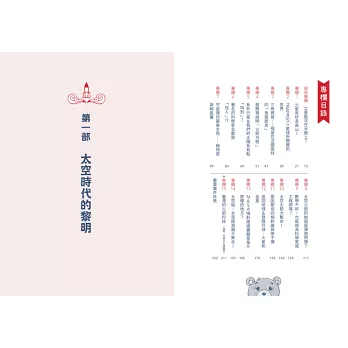本書由爸爸與12歲女兒一來一往的對話構成主體,搭配可愛生動的插畫,角色躍然紙上。爸爸包容傾聽小美興奮發表她的想法、熱情分享所知的知識,親子互動中散發著信任與支持,小美說以後她的太空旅行不會帶上爸爸,爸爸真情流露會很想念女兒,這是關愛備至的父母心!